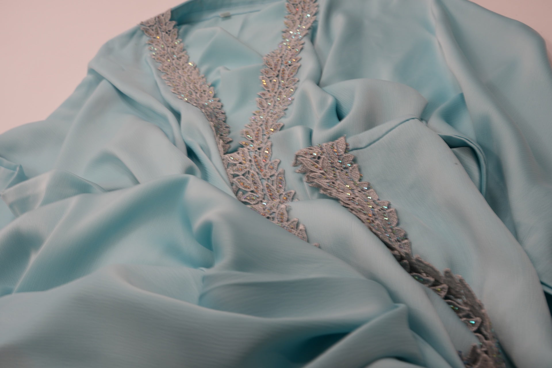 Introducing Sky Blue Open Abaya & Dress Four-Piece Set. This abaya offers a sophisticated blend of traditional design and modern refinement. Detailed with delicate embroidery, each piece showcases expert craftsmanship and provides an elegant, breathable layering option. Perfect for formal events or refined daily wear, the set ensures a graceful fit that enhances your overall look while maintaining comfort and style.