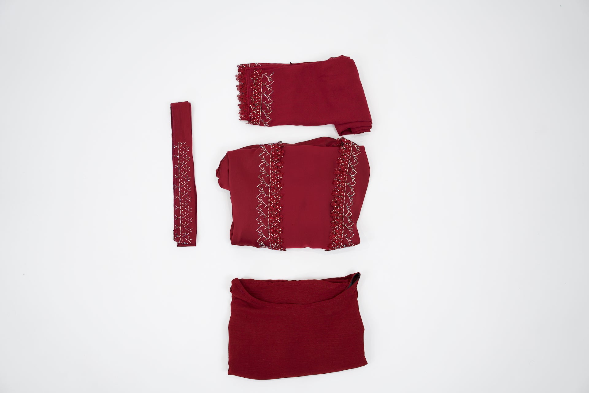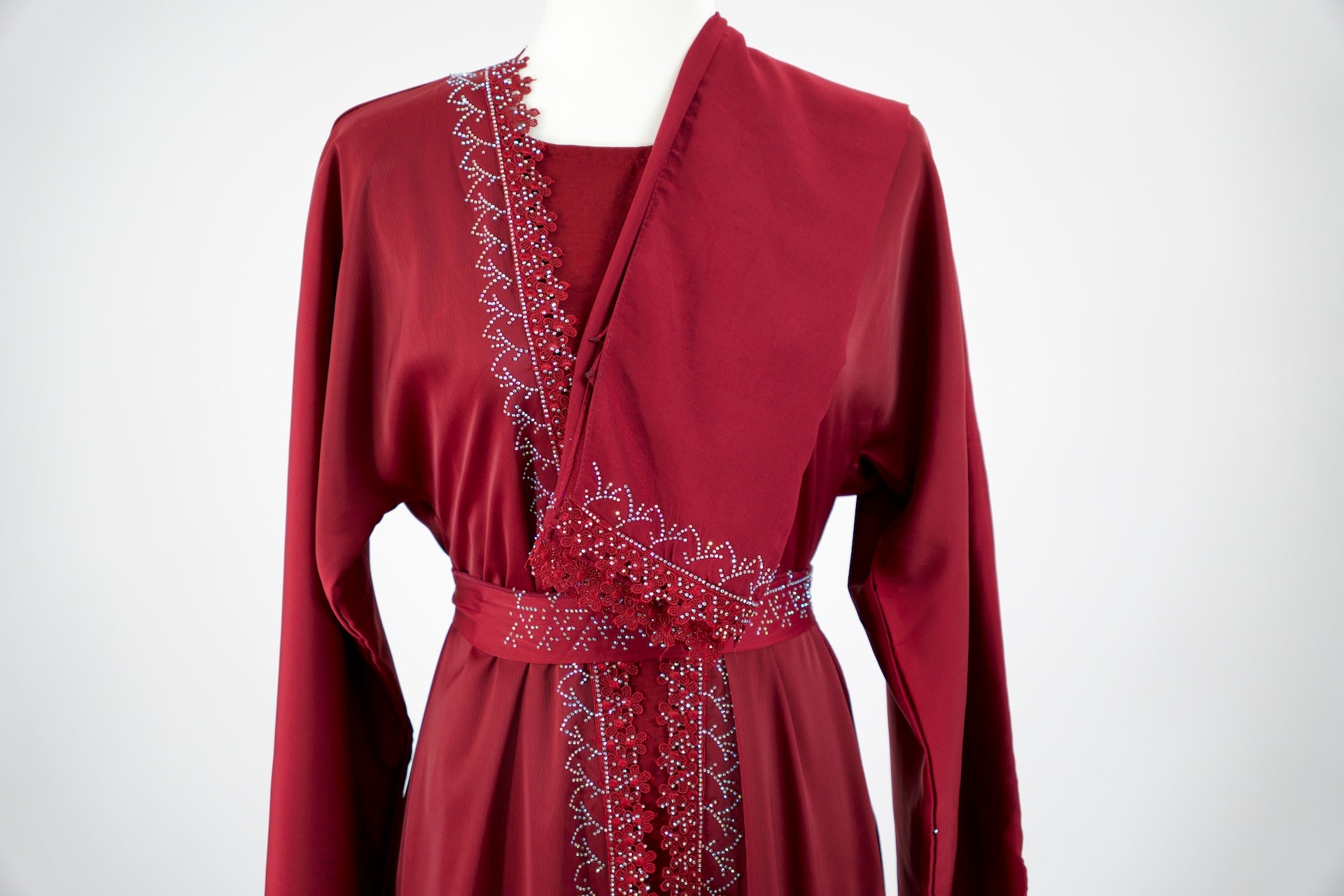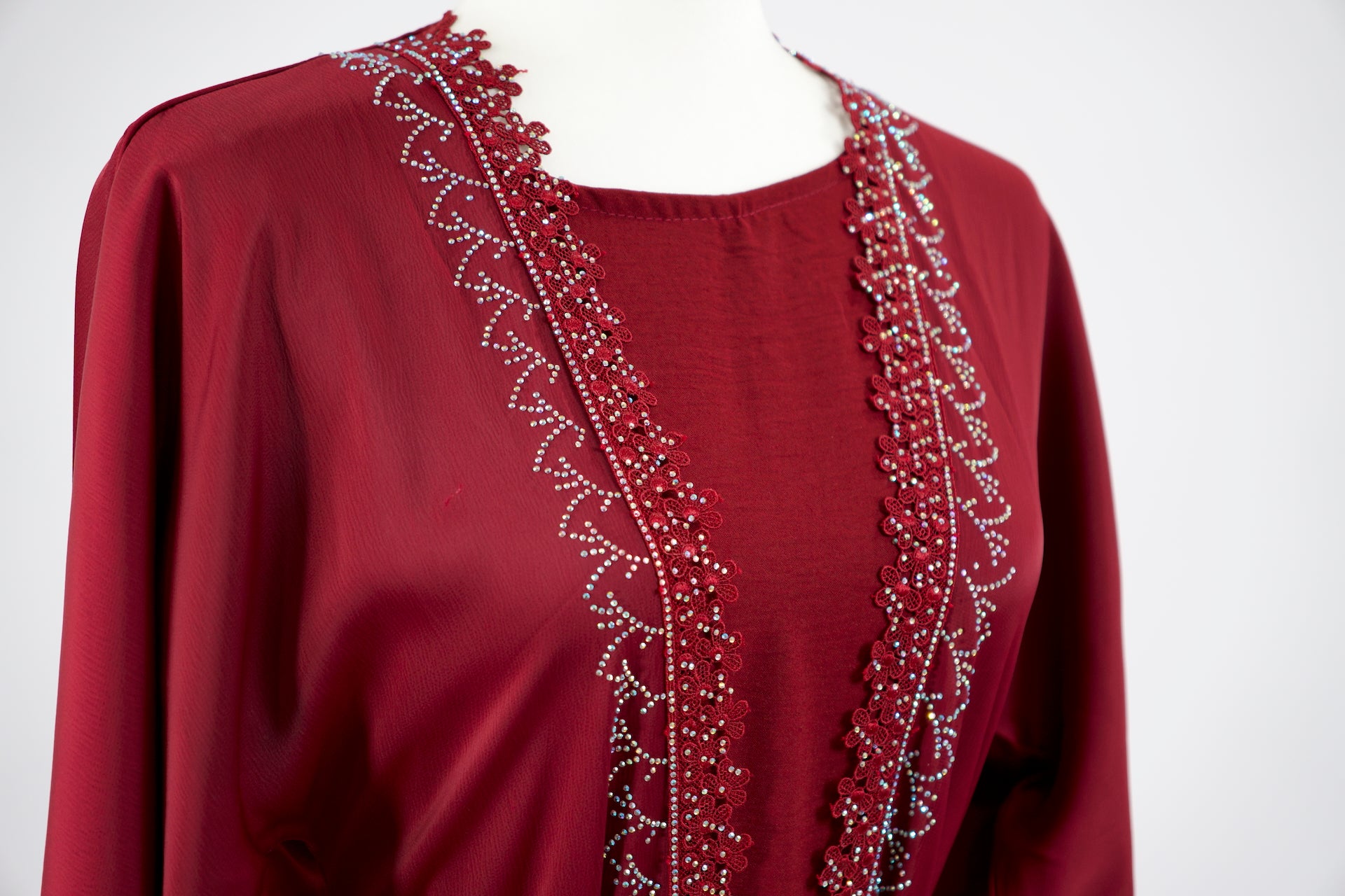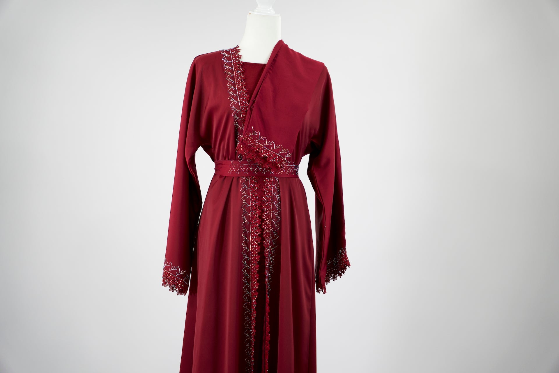 Introducing Goldish Sand Open Abaya & Dress Four-Piece Set. This abaya offers a sophisticated blend of traditional design and modern refinement. Detailed with delicate embroidery, each piece showcases expert craftsmanship and provides an elegant, breathable layering option. Perfect for formal events or refined daily wear, the set ensures a graceful fit that enhances your overall look while maintaining comfort and style.